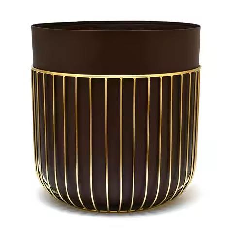 Set of 3 Gold Plated Metal Planter Pots in Different Sizes for Floor Display Ideal for Indoor Living Room Decorative Use