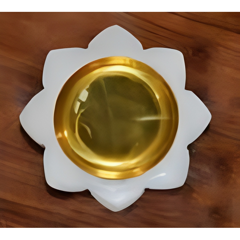Set of 3 Golden Brass Diya/Deepak Oil Lamps 3 Inch X 2 Inch 400G Each for Pooja & Lighting Decoration Marble Base
