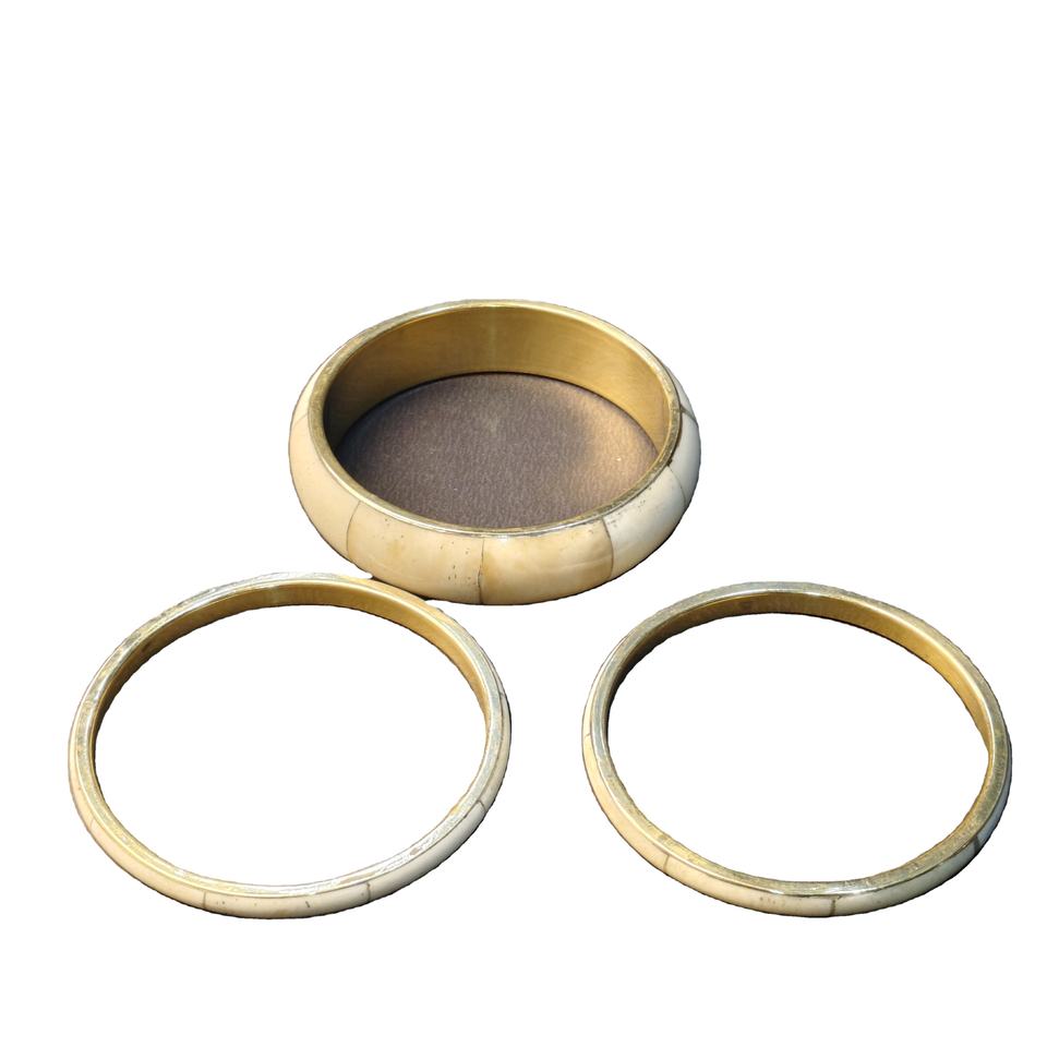 Set of 3 Hand-Polished Natural Bone and Brass Bangles – Artisan Crafted Cream Jewelry Set – Bohemian Style Mixed Width