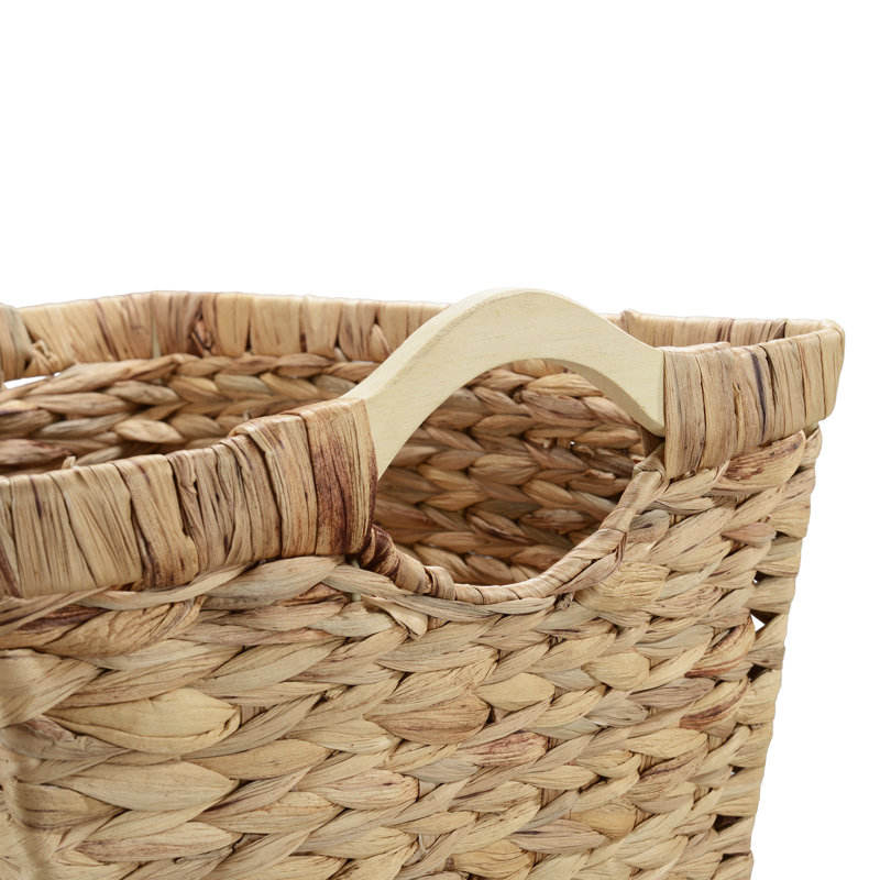 Set of 3 Handwoven Wicker Storage Baskets with Wooden Handles