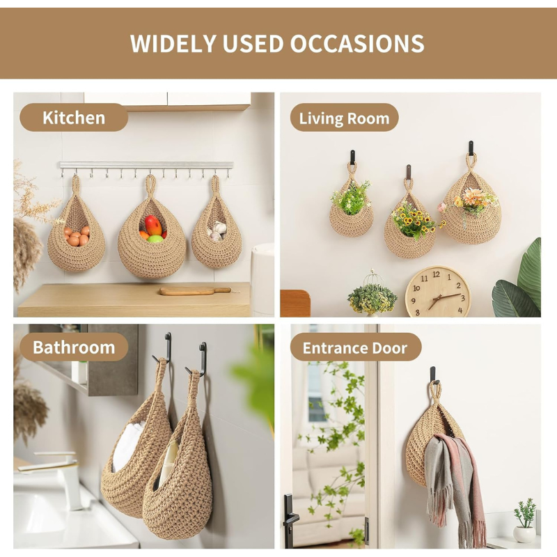Set of 3 Hanging Storage Baskets for Kitchen and Home Organization Durable Space-Saving Storage Bags for Fruits Vegetables