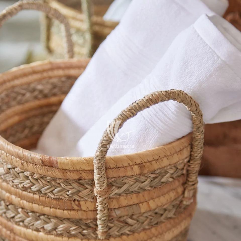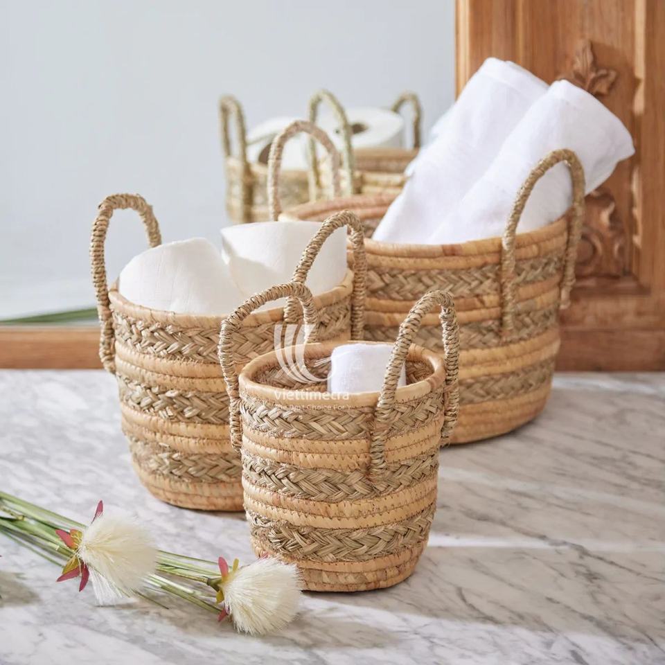 Set of 3 Hyacinth and Seagrass Woven Baskets with Handles, Rustic Storage and Stylish Organization Versatile Sizes Handicraft