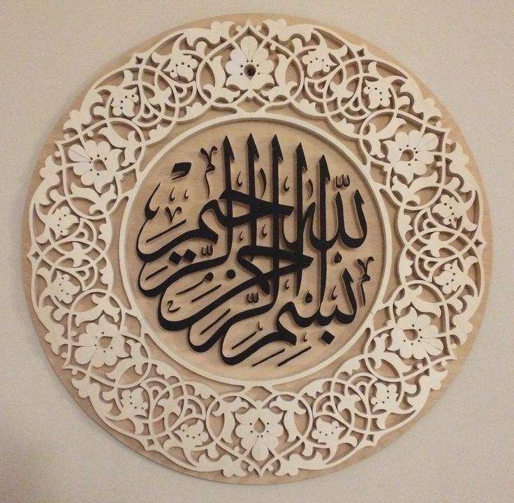 Set of 3 Islamic Art Deco MDF Wall Murals with Plant Pattern Ayatul Kursi Quran Wall Hanging Decor