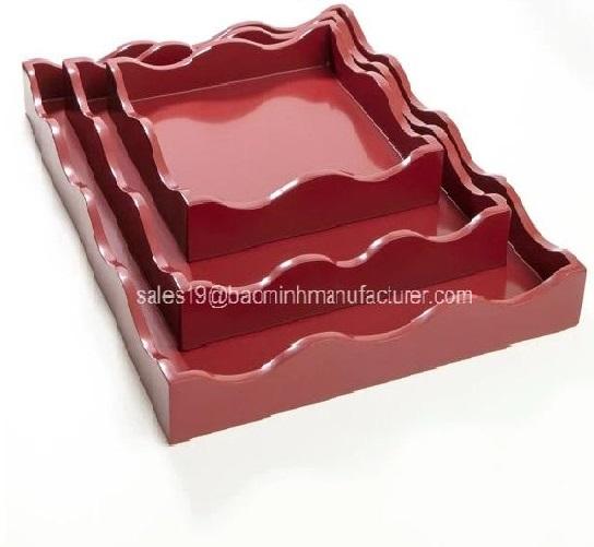 High Quality Set of 3 Mint Lacquer Ottoman Tray Hand-Polished Between Each Coat Double Tiers for Bathroom Tableware