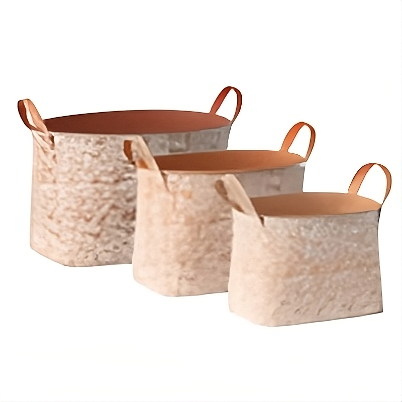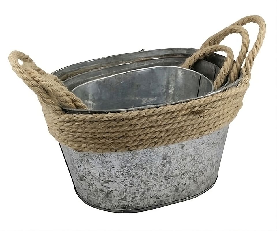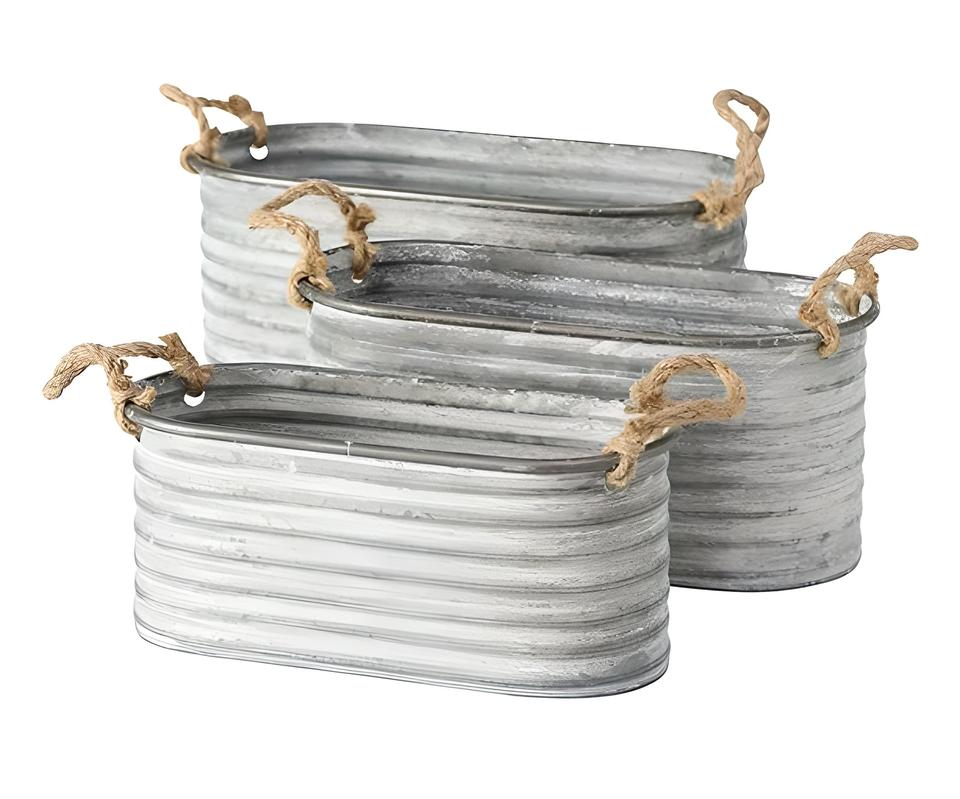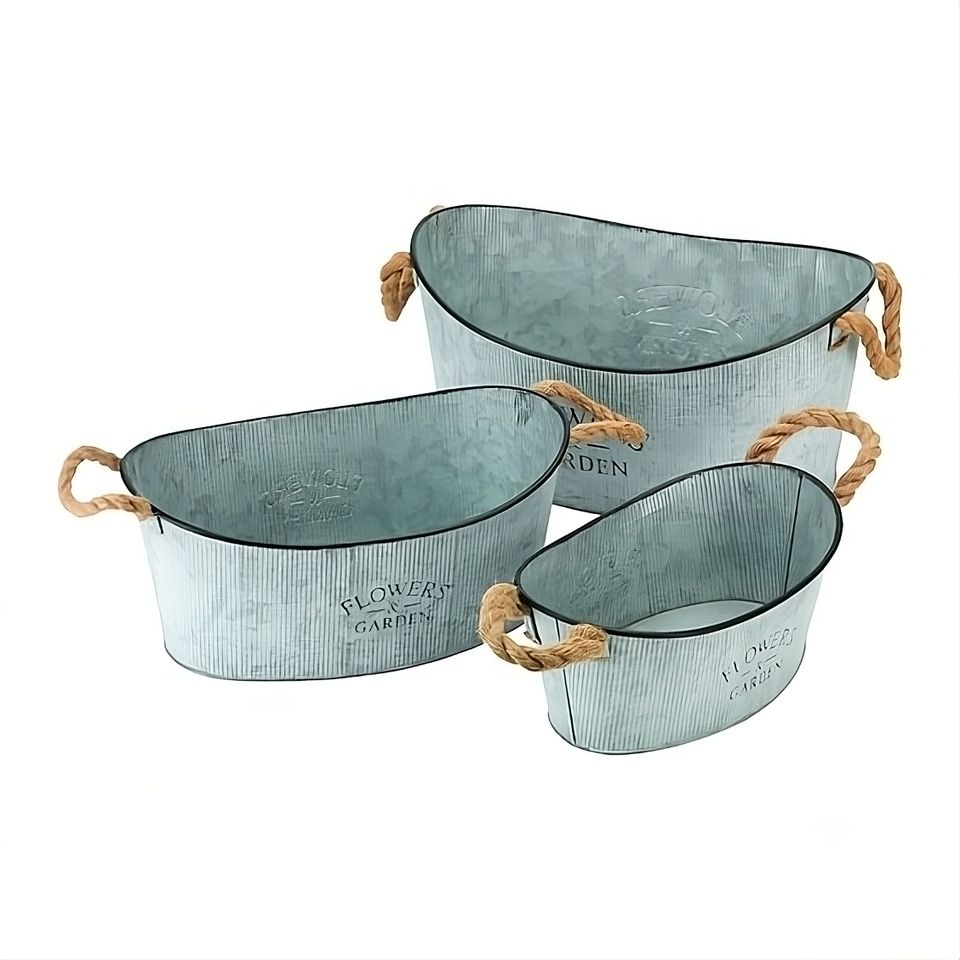 Set of 3 Modern Design Garden Tubs Antique Clay Patina Finishing Steel with Handles Metal Material for Garden Care