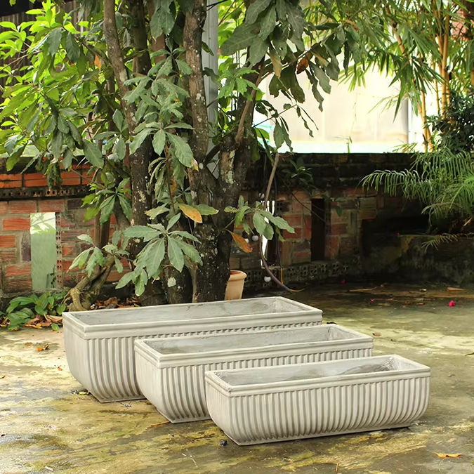 Set of 3 Outdoor Garden Pots White/Grey/Black Concrete Planters for Styling & Landscaping Projec