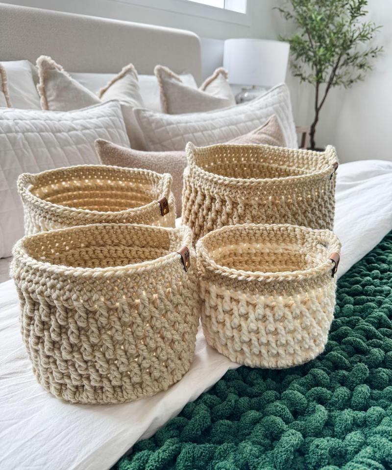 Set of 3 Premium Macrame Baskets Handmade Stylish Storage Organizers for Home Decor Tabletop Bedroom Living Room Use From India