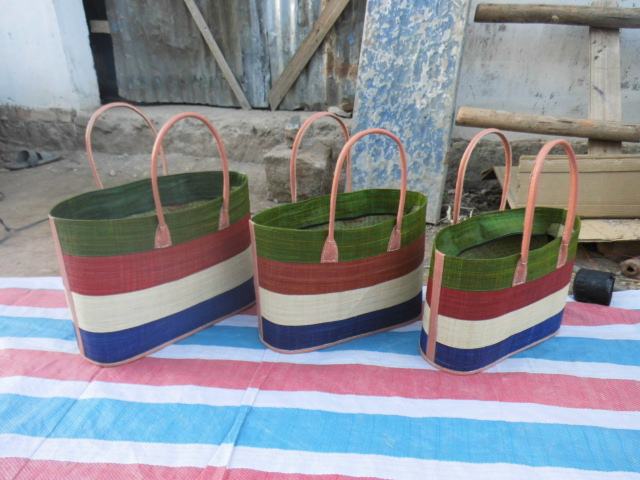 Set of 3 Raffia Handbags Madagascan Leather with Zipper Closure and Straw Lining Stylish Lady Beach Bag