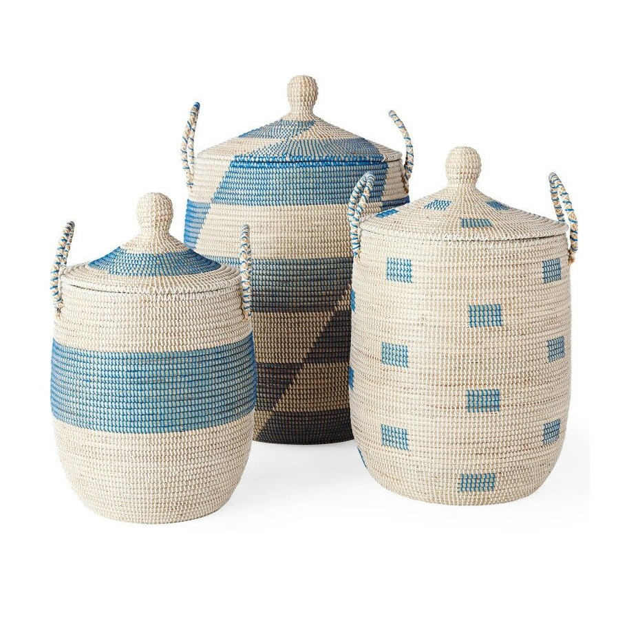 Set of 3 Seagrass Laundry Hamper Best Seller Storage Baskets Laundry Basket with Lid Perfect Holding Kids Toys Clothes