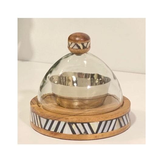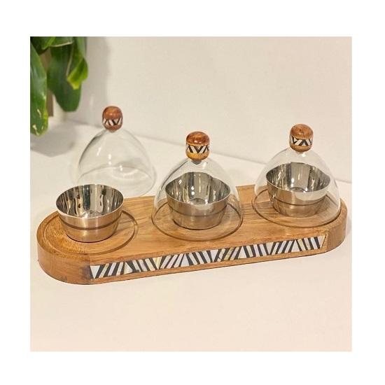 Set of 3 Stainless Steel Nuts Server With Glass Lid And Wooden Base Dry Fruits Server For Kitchenware Accessories