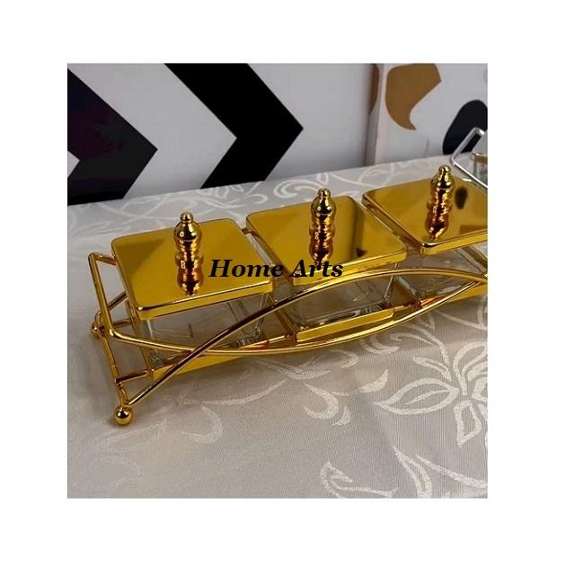 Set of 3 Stainless Steel and Glass Chocolates Server Newest Design Square Shape Golden Color Sweets Dessert Box