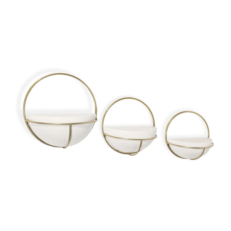 Set of 3 Wall Planter 3 Pot in White & Gold Colour Metal Planter the Geometric Design and Accents Create a Trendy & Stylish Look