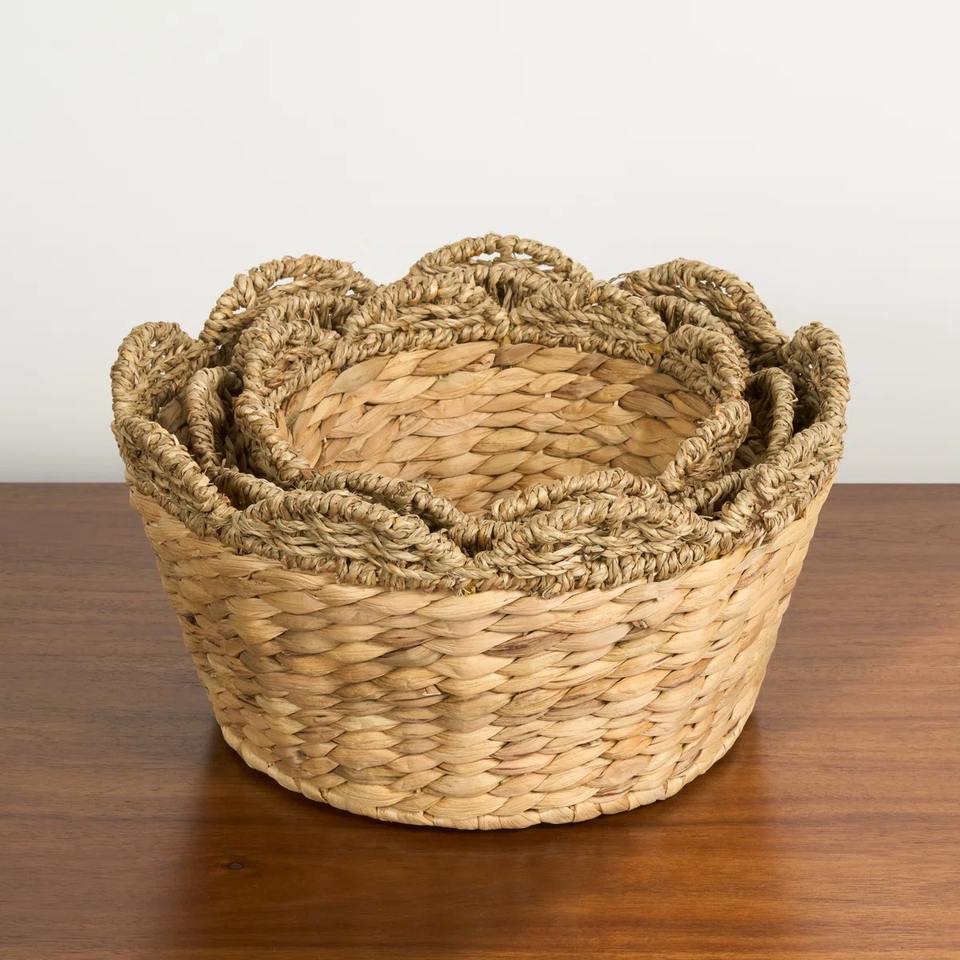 Set of 3 Water Hyacinth Woven:Size: L: D14 x H7 M: D12 x H5,5 S: D10 x H5 inch
