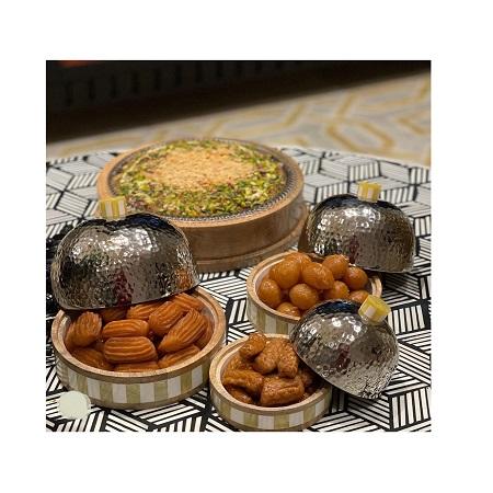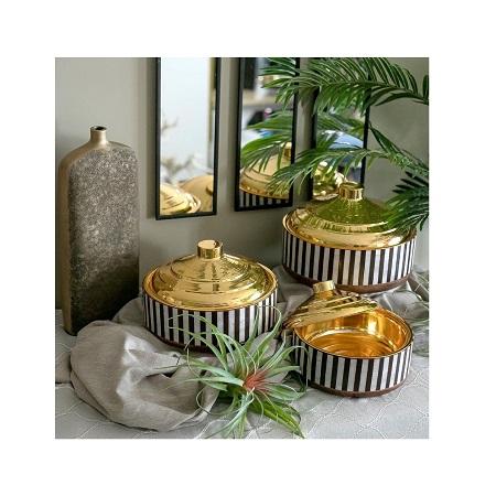 Set of 3 Wood and Mother of Pearl Work Food Serving Dish With Stainless Steel Lid for Hotel and Restaurant Use