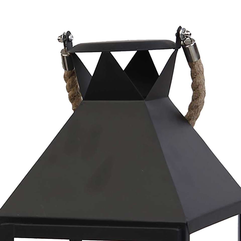 Garden Lantern Metal Lantern Candle Holder Set Rope Handle Black