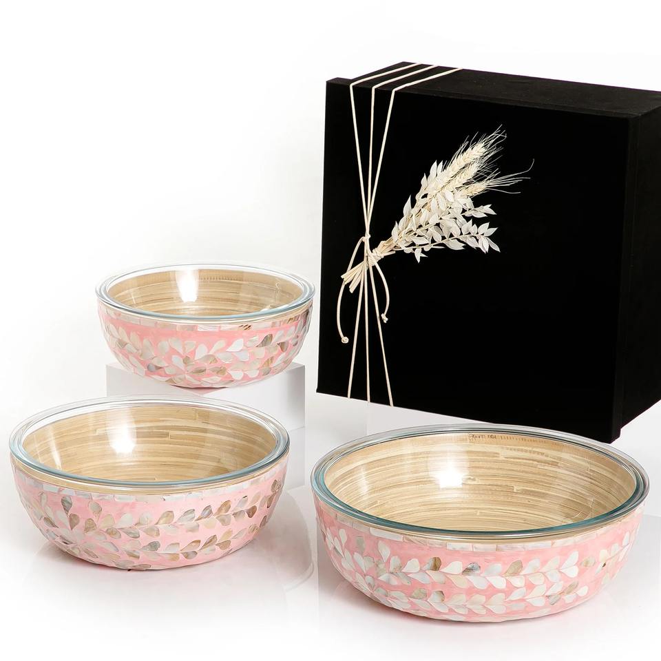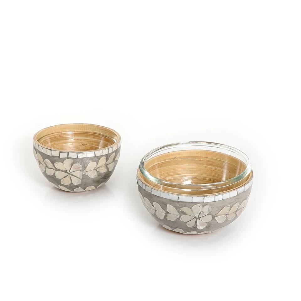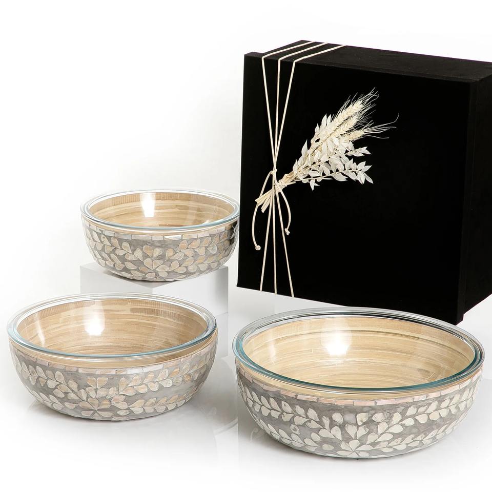 Name:Set of 3 pearl bamboo bowls L: D13 x H4 M: D11,2 x H4 S: D9,6 x H3,5