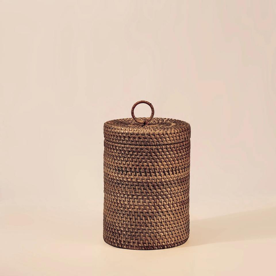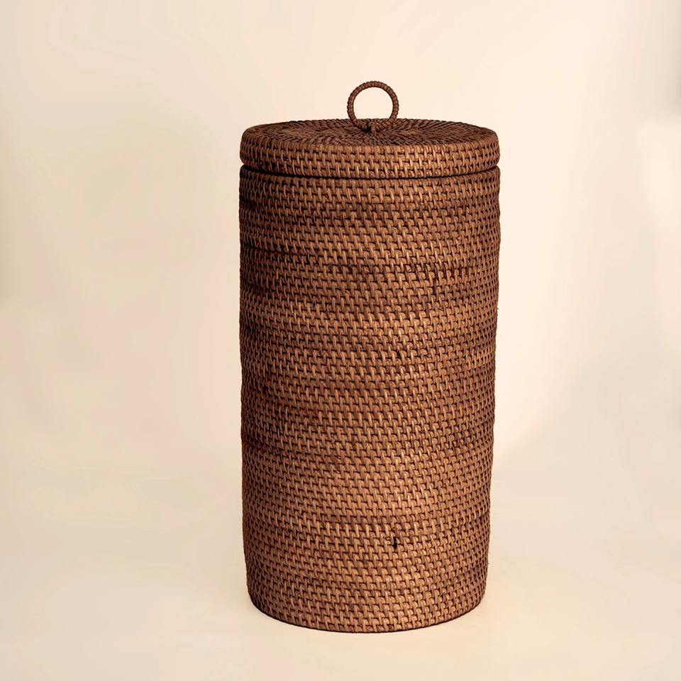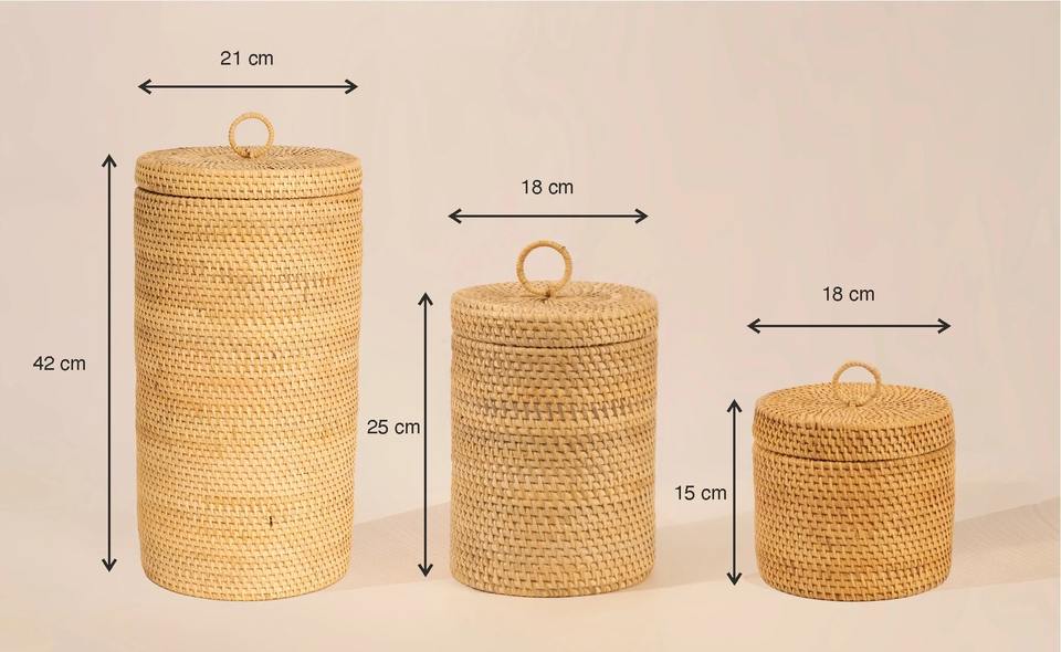 Set of 3 rattan paper boxes L: D8,3 x H16,5 M: D7 x H9,8 S: D7 x H6