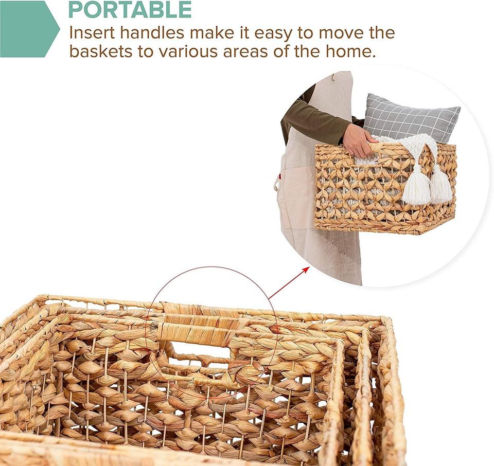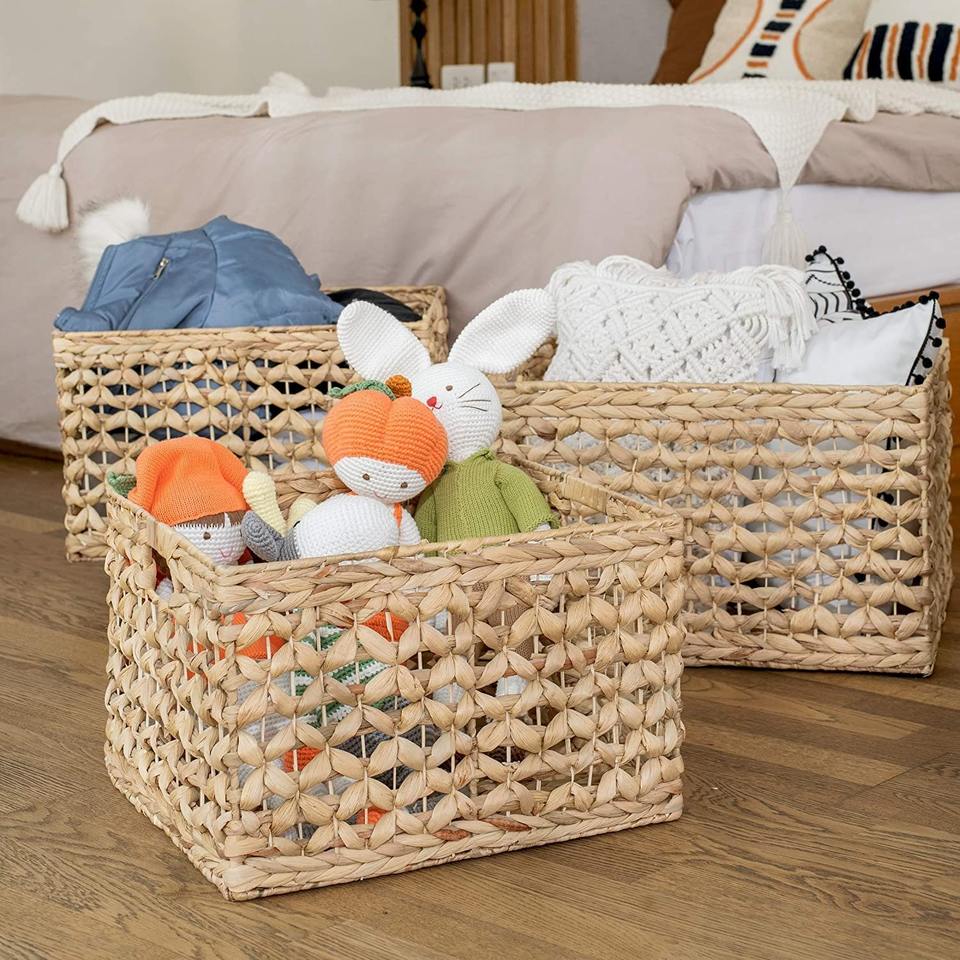 Set of 3 water hyacinth storage baskets with woven floral pattern Handmade Storage Basket Wholesale eco-friendly Made in Vietnam