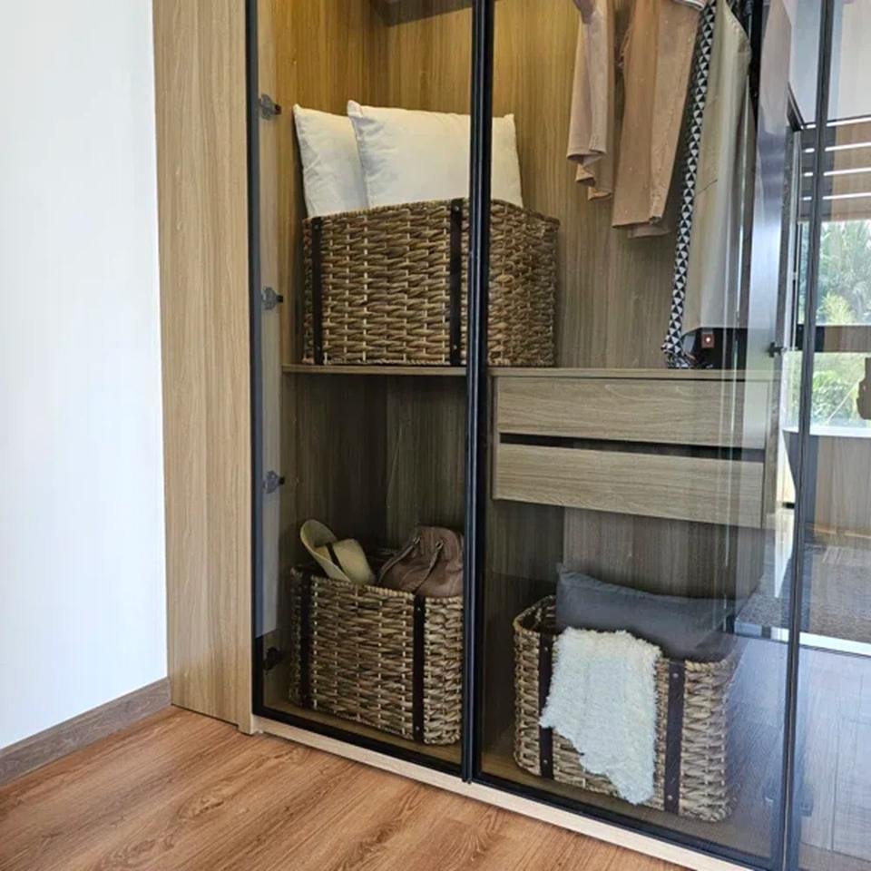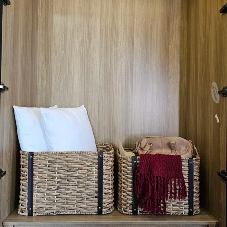 Set of 3 water hyacinth baskets leather:Size: Customized
