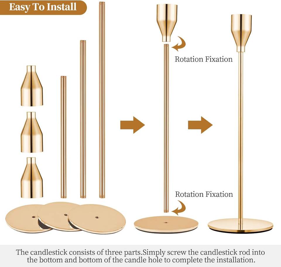 Set of 30 Gold Metal Taper Candle Holders Decorative Wedding Dinner Candlestick Holders and Lanterns for Weddings and Dinners
