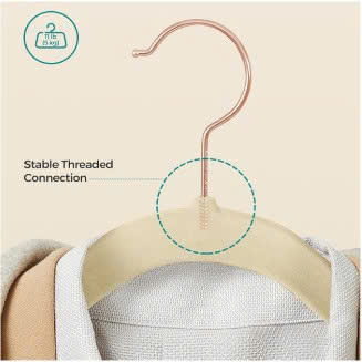 Set 30 Premium Velvet Fabric Clothes Hangers Anti Slip Rose Gold Swivel Hook PET Nylon Iron Vietnam Manufacturer Custom Brand