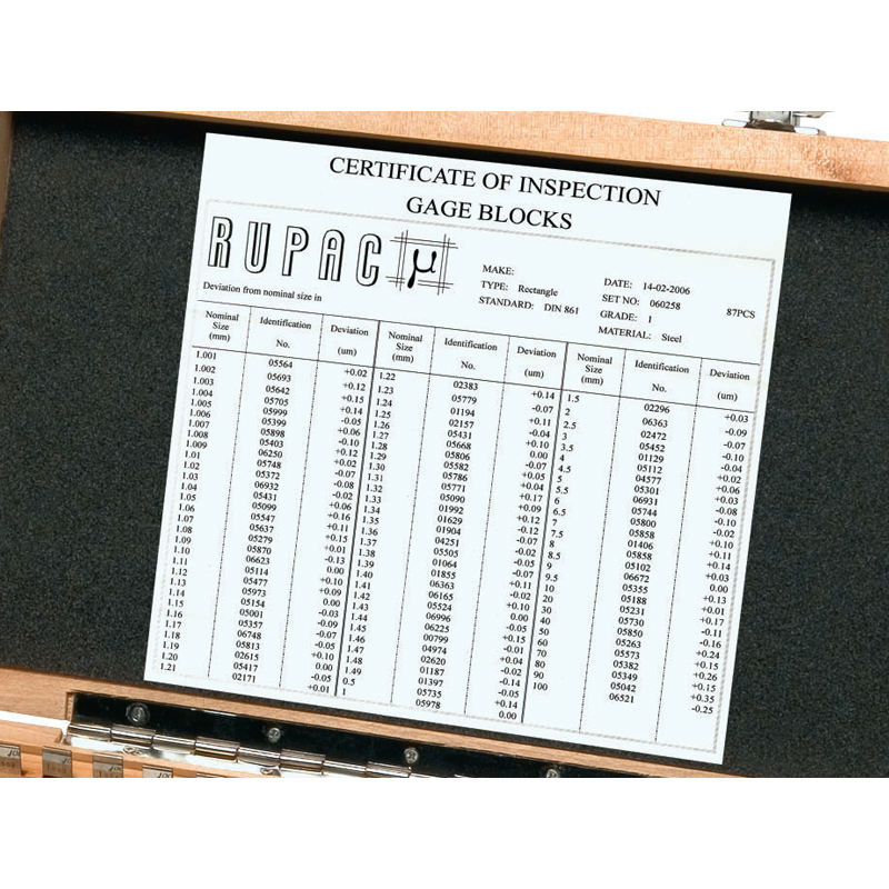 Set of 32 Rupac MicroMet gauge blocks in grade 2 steel