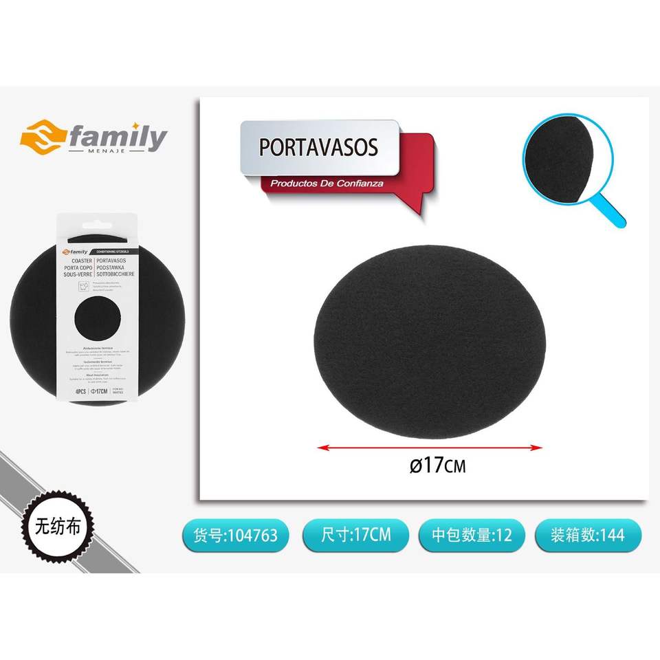 Set of 4 Black 17 cm Round Wool Felt Coasters Eco-Friendly Absorbent Placemats with Square Pattern Free Sample Available
