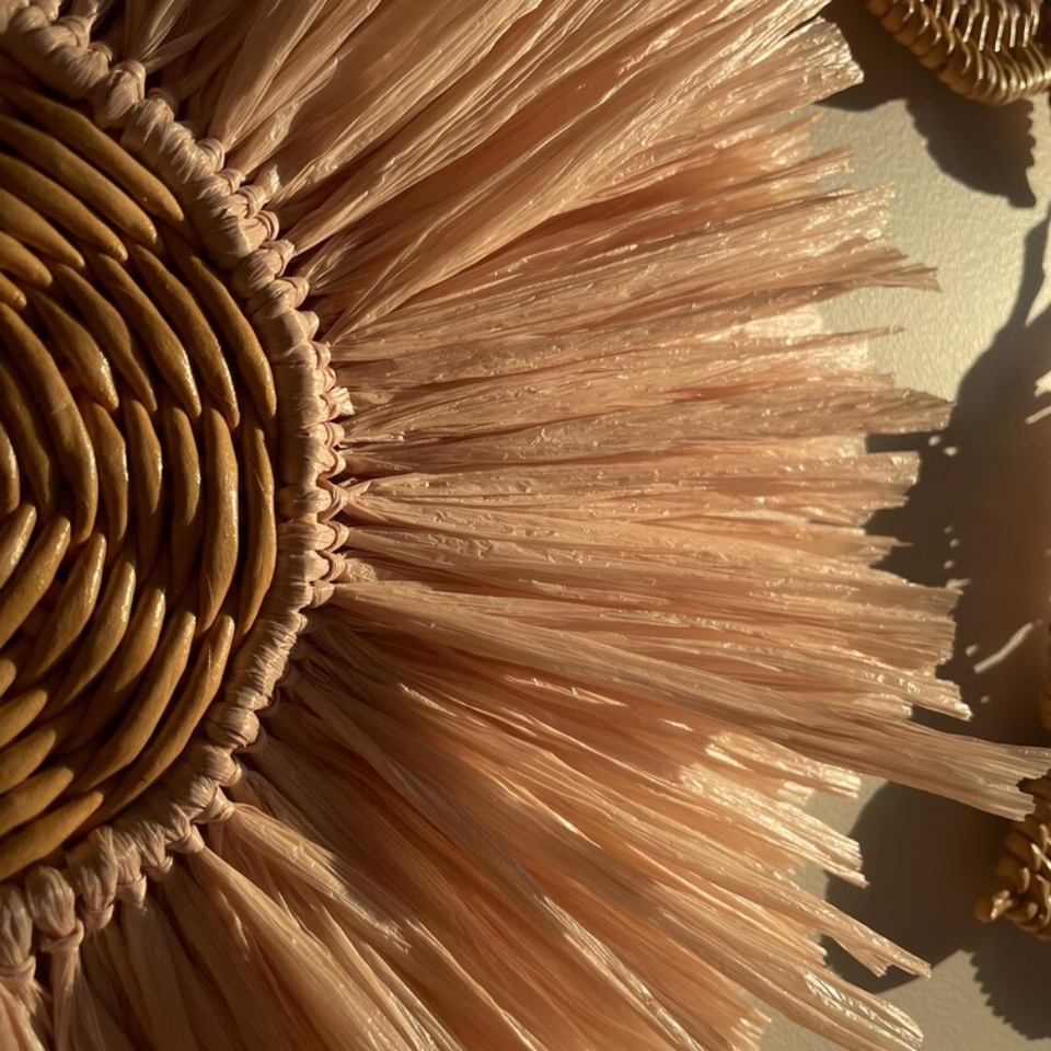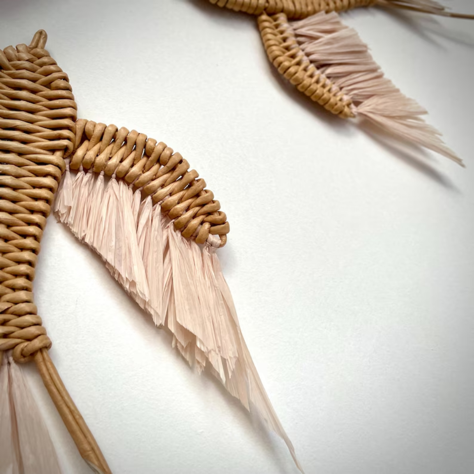 Set of 4 Handwoven Natural Fiber Wall Decor (3 Swallows & 1 Fringe Plaque) for Bohemian Coastal Home Art