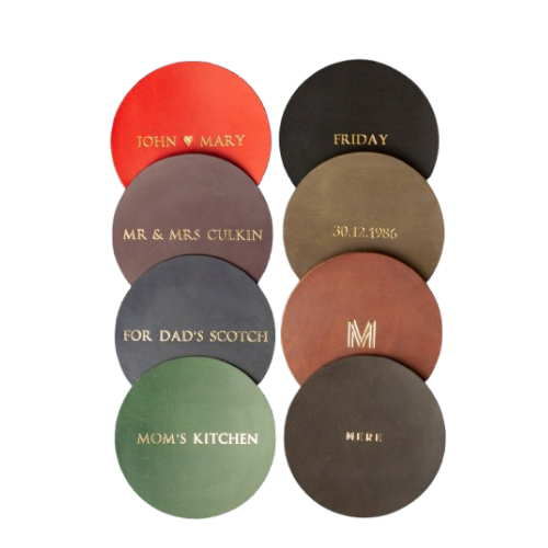 Product name:Set of 4 Personalized Leather Coasters Gold Foil Embossed Custom