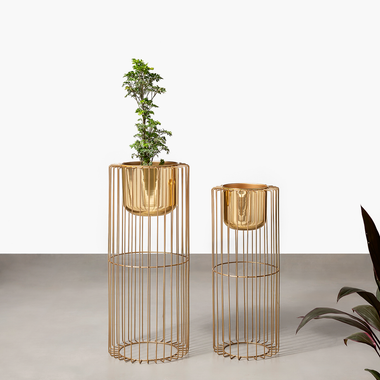 Set of 4 Pink Coated Stand Flower Vase Golden High Quality Indoor Decoration for Home, Office & Hotel Metal Plant Pot