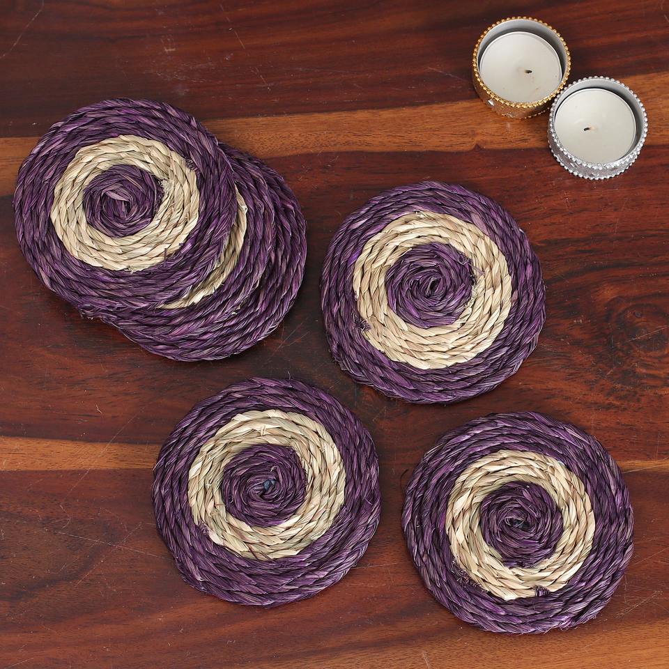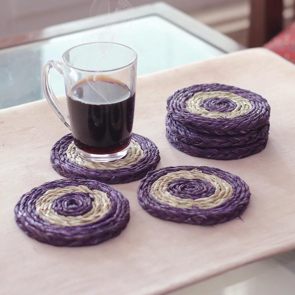 Set of 4 Purple seagrass coasters Eco friendly products Made in Vietnam Table decoration Wholesale