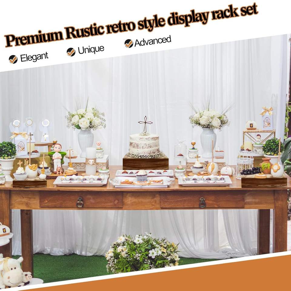 Set 4 Eco-Friendly Rustic Wooden Display Boxes Stackable Cake Risers Black Brown for Farmhouse Style Party Wedding Dessert Table