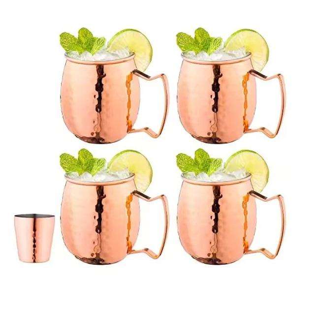 Set of 4 Solid Copper Handle Hammered Copper Moscow Mule Mugs Multi Purpose Beer/Vodka/Cocktail Cups for Parties