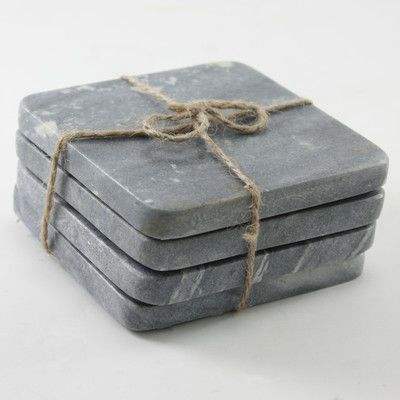Set of 4 Square Glass Coaster in Slate Finish Tabletop Drink Accessories Restaurant Bar Mats And Pads Table Decoration