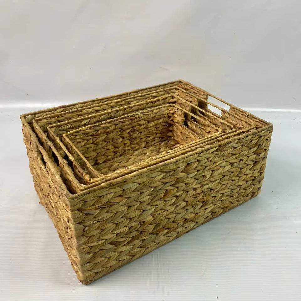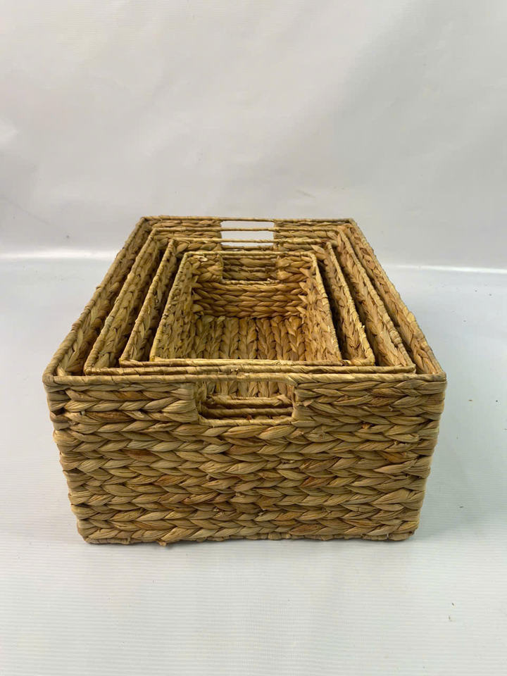 Set of 4 Vintage Eco-Friendly Rectangular Water Hyacinth Storage Baskets