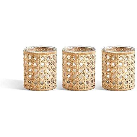 Set of 4 White Candle Holders with Geometric Cut-Out Design Gold Lining Modern Home Decor Accent Lighting