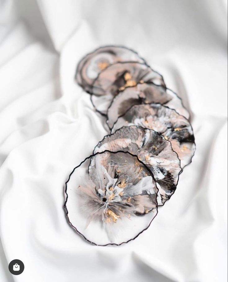 Set of 4 resin coasters with metallic leaf inlays perfect for vintage inspired tables and antique furniture sets