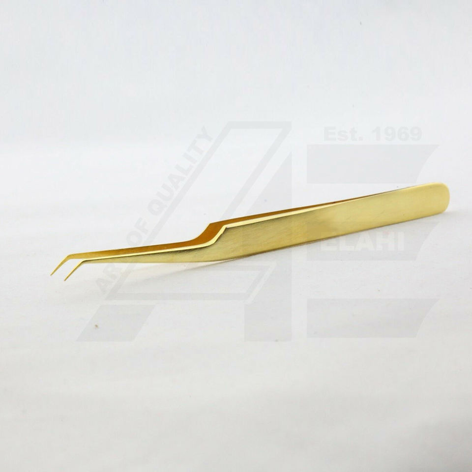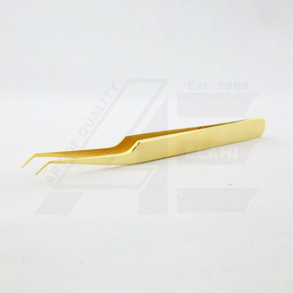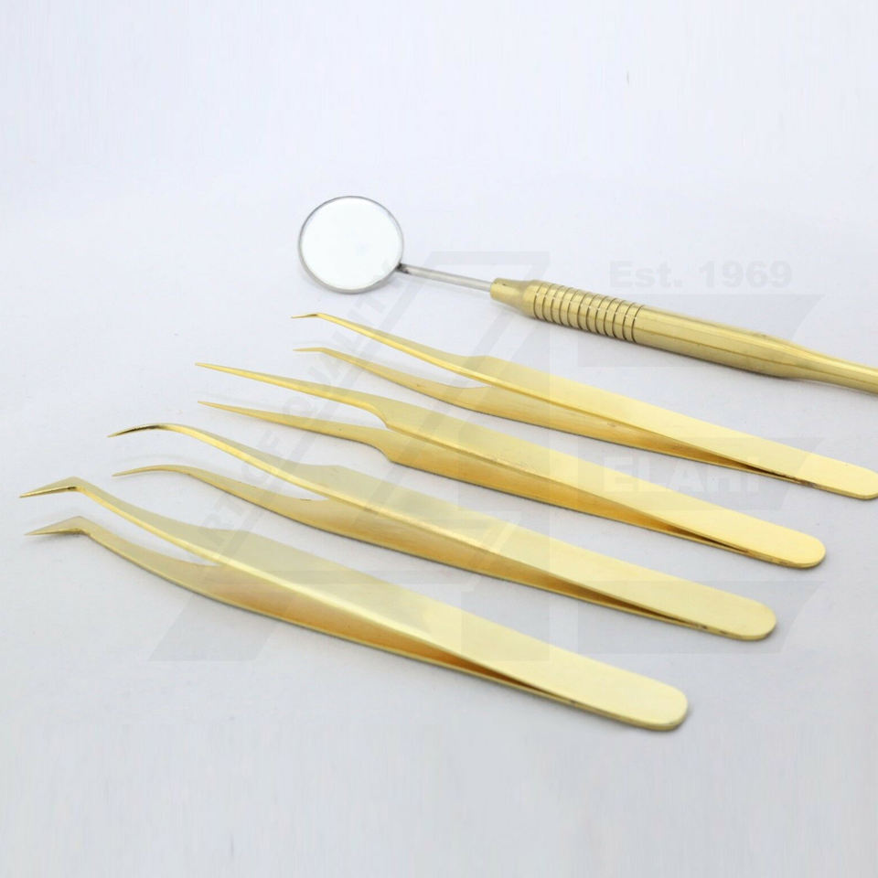 Set of 5 Eyelash Extension Straight or Curved or Volume Stainless Steel Gold Tweezers Glamorous Tools by LA ELAHI and CO