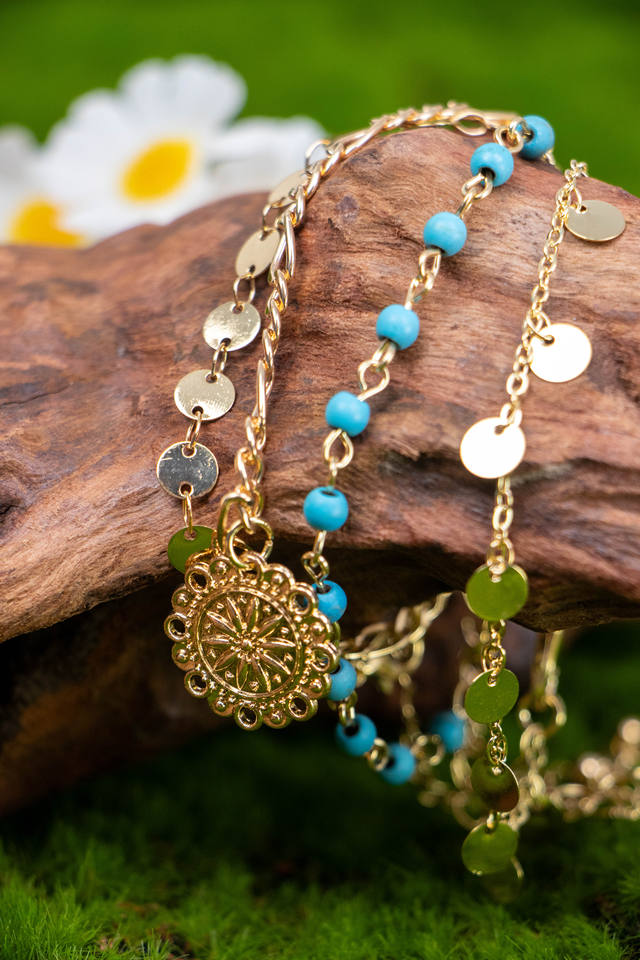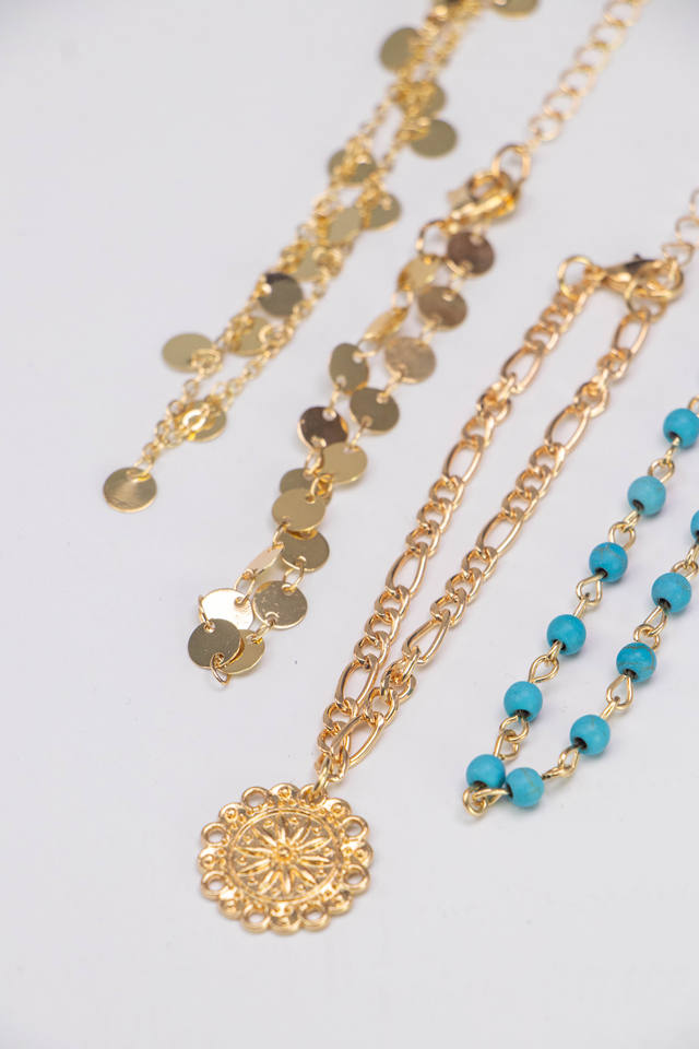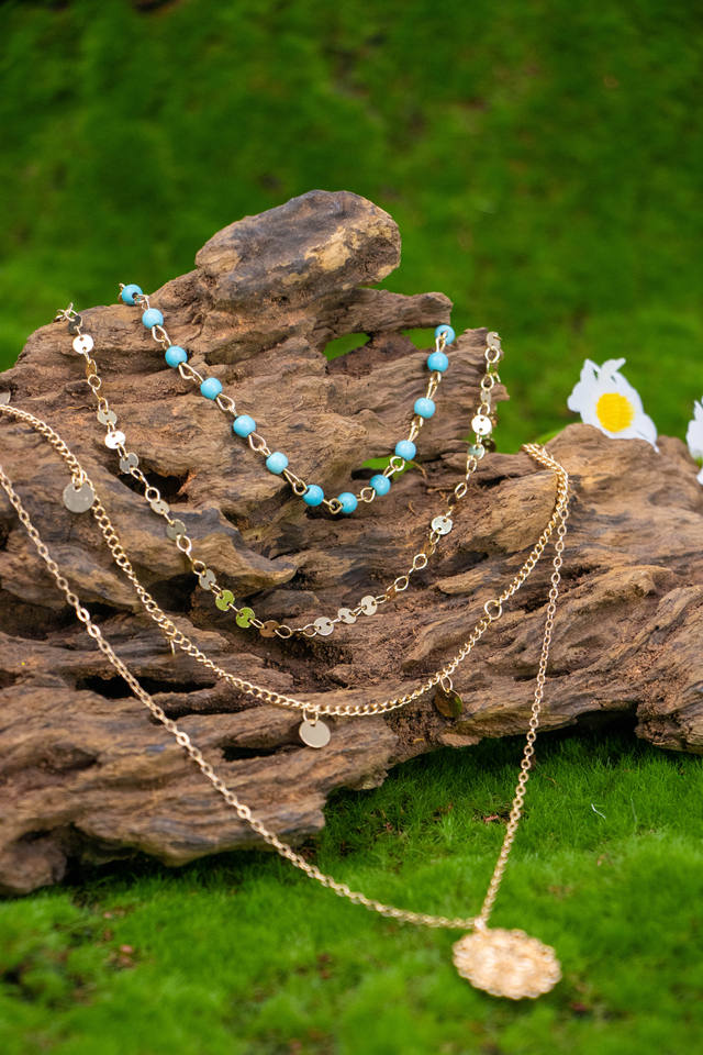 Set of 5 Gold-Plated Chain Link Necklace for Women Bohemia Classic Thick Multi-Layer Stack Chunky Alloy Jewelry
