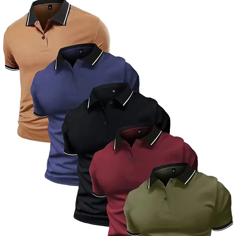 Set of 5 Men's Summer for Shirts 100% Cotton Solid Color Short Sleeve Breathable Anti-Wrinkle Quick Dry Sportswear