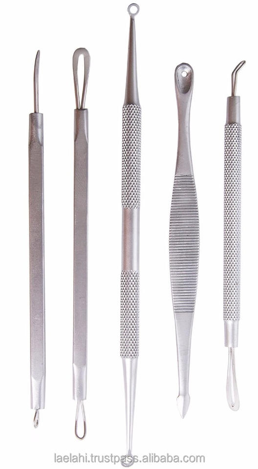 Set of 5 Professional Acne Treatment Face Tool Kit High Grade Stainless Steel Extractors for Blackhead Pimple Removal