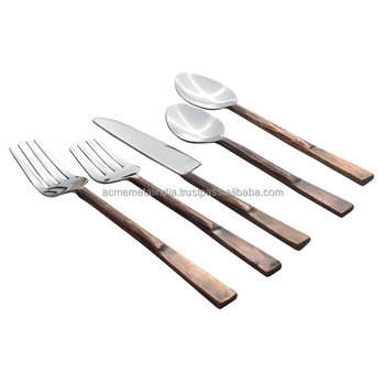 Set of 5 Spoon Folk Knife Cutlery Set in Stainless Steel with Brass Handle Perfect for Home Restaurant Food Serving