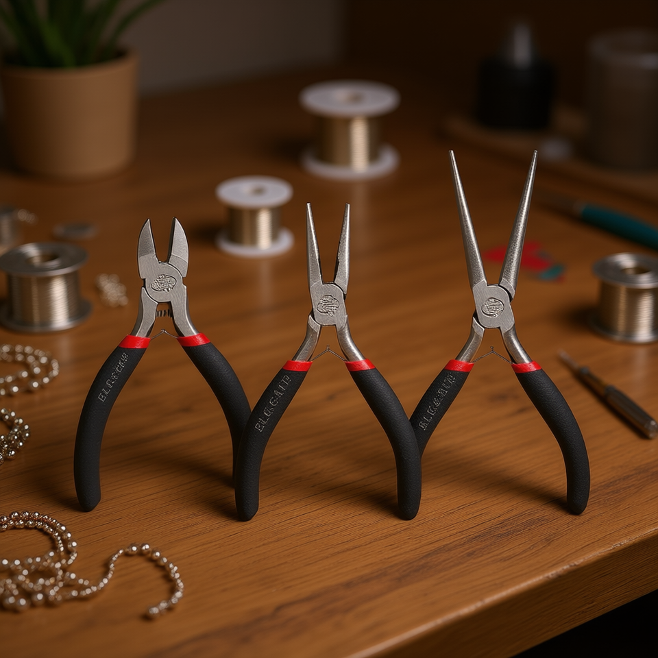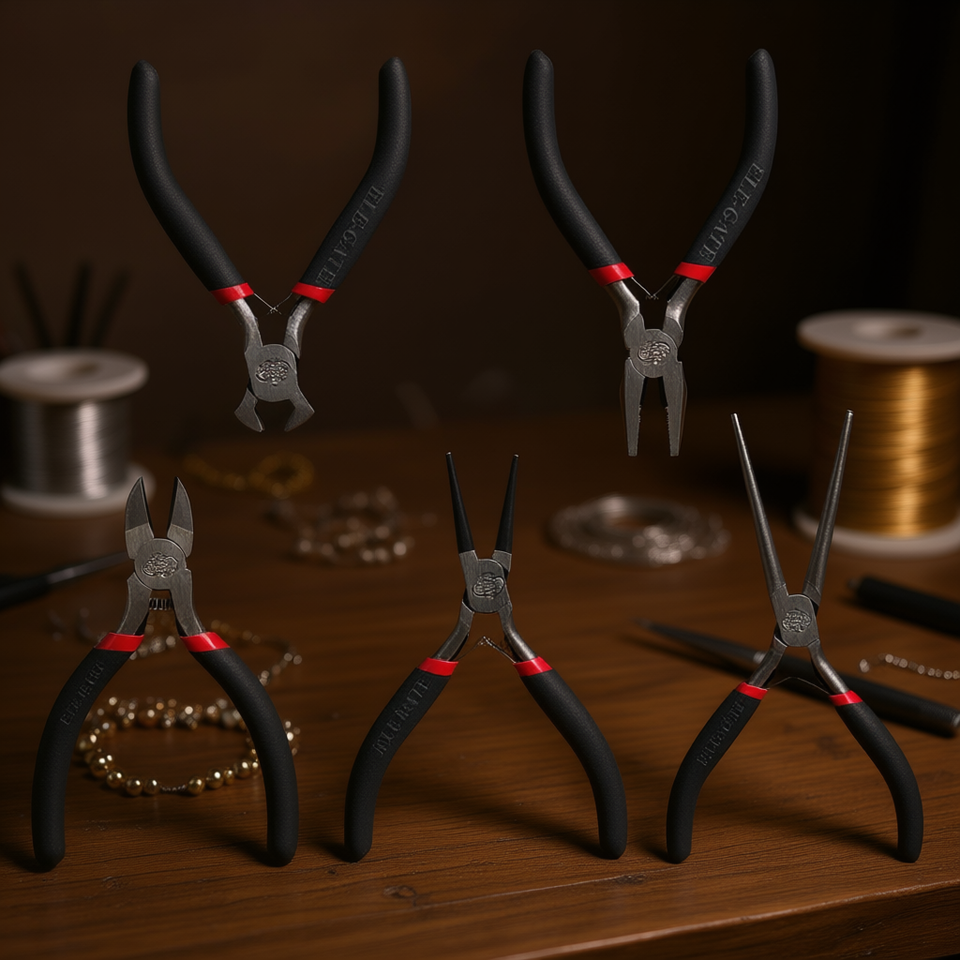 Elegate Round Nose Jewelry Making Pliers Set With Smooth Jaw Rubber Handles, Stainless Steel, Black, Multi-Functional, 5-Piece,
