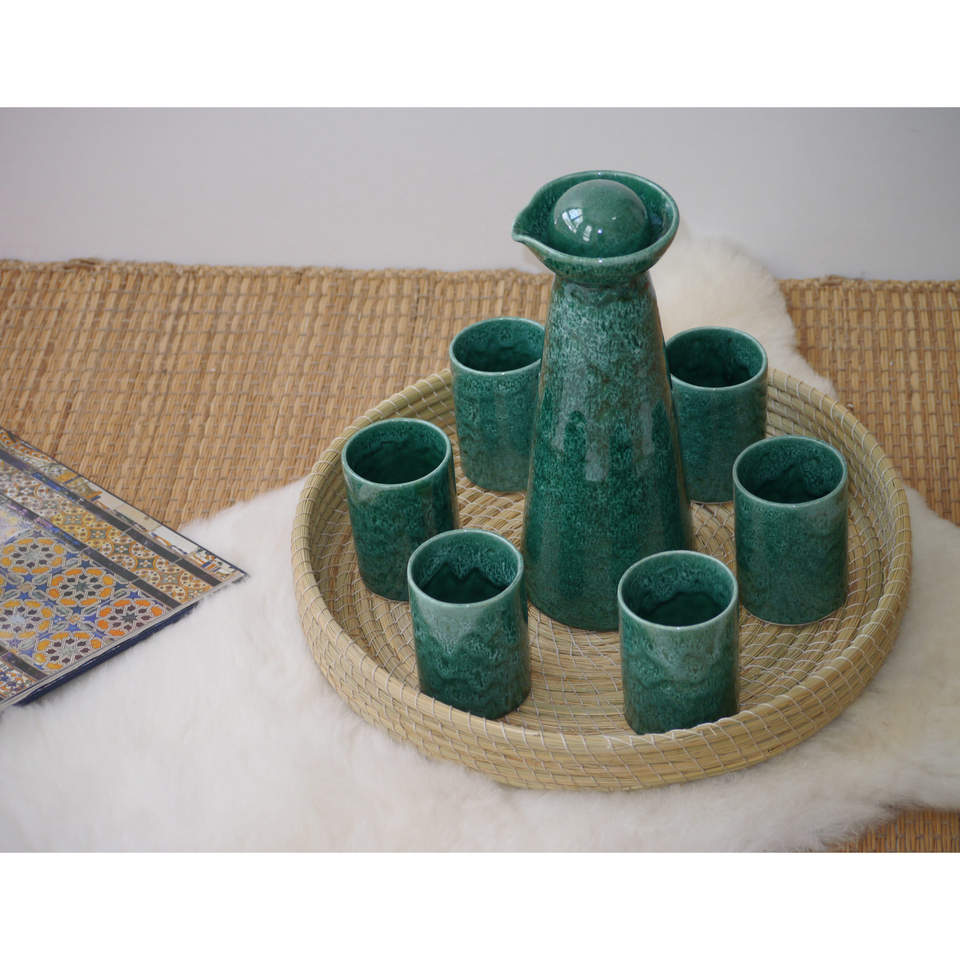 Set of 6 Foundouk Teal Ceramic Cups Oven/Microwave/Dishwasher Safe