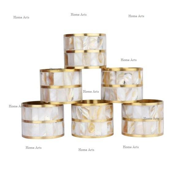 Set of 6 MOP And Wood Napkin Rings Round Shape Customized Size Napkin Tissue Rings For Wholesale Supplier