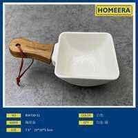 Set of 6 Porcelain Fruit and Restaurant Plates with Acacia Wood Handle 75 Inch for Weddings and Hotels Wholesale Supply