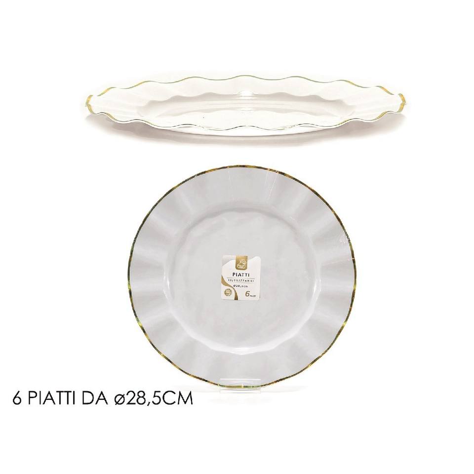 Set of 6pcs White Dishes & Plates 28.5 cm in Size with Border Elegant and Stylish