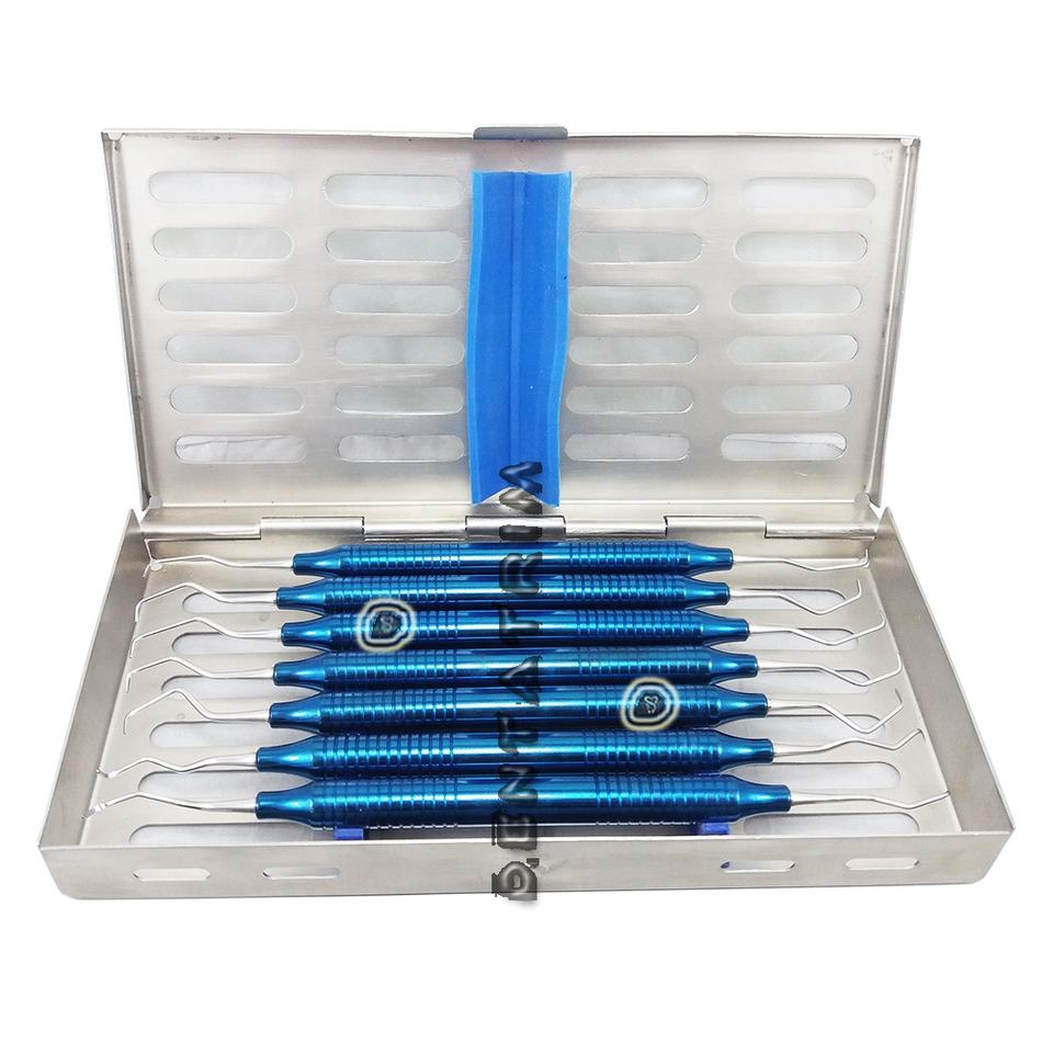 Set of 7 Gracey Curettes With 1/2-13/14 Titanium-Coated Handle Manual Periodontal Stainless Steel Skin Stapler