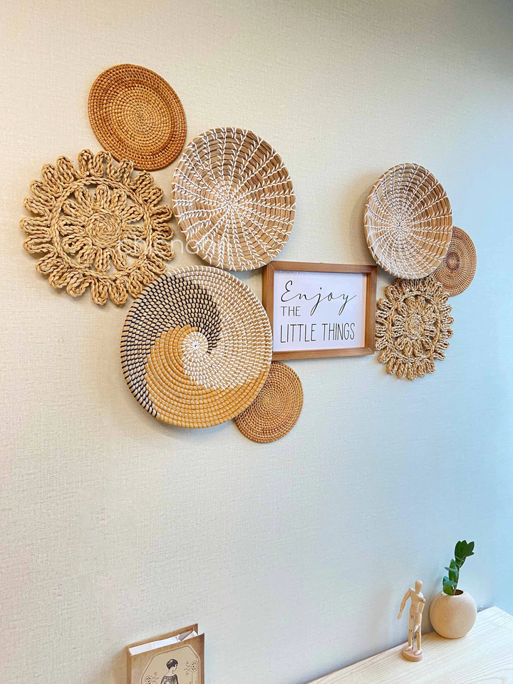 Set of 8 Boho Decor, Wall Basket Decor Woven Wall Hanging, Hanging Basket Wall Rattan Decor Woven Wall Basket