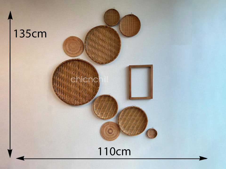 Set of 9 Hanging Wall Basket Decor Wall Wicker Basket Decor, Wicker Wall Art Home Decor Boho, Boho Wall Weave Wall Hanging